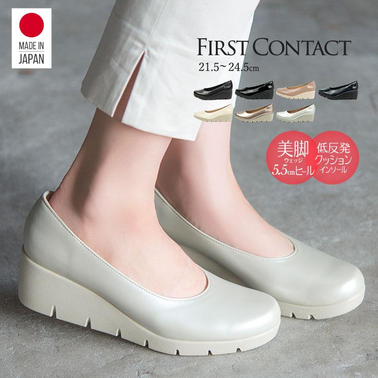 First Contact 日本製 ウェッジソール パンプス レディース 歩きやすい 黒 コンフォートシューズ ヒール 冠婚葬祭 靴 オフィスパンプス 疲れない 109 109 S Mart 通販 Yahoo ショッピング