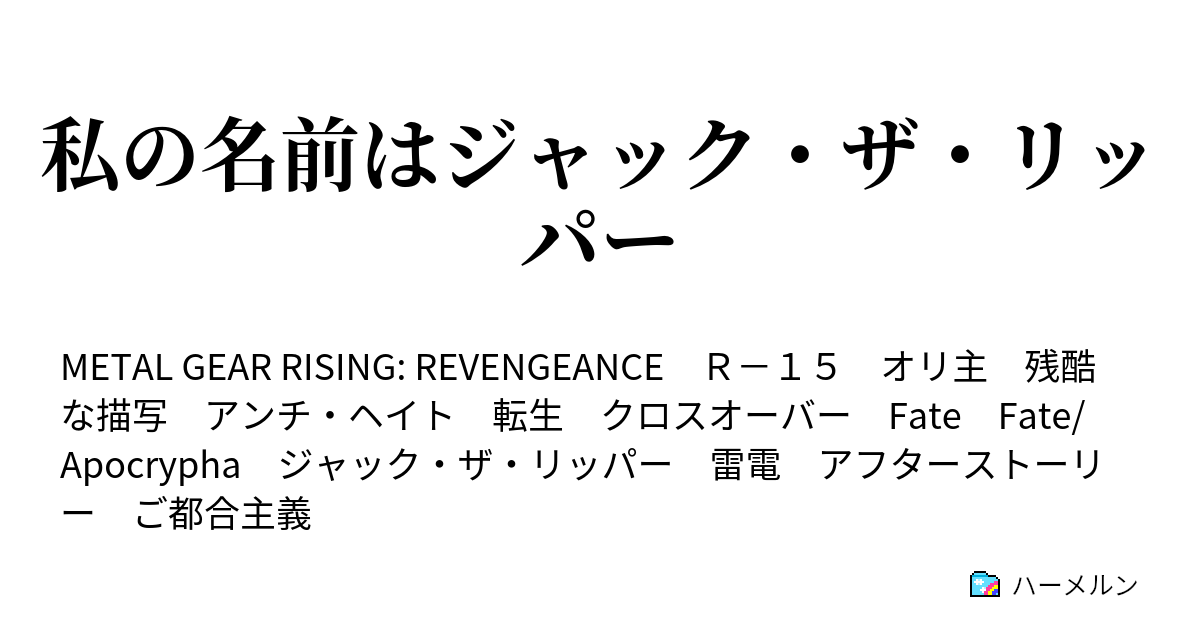 MGS4雷電「もう戦わなくていいんだ」→MGR雷電「俺はジャックザリッパーだ」 買って"大大大正解"! 魔法の調理グッズ イヌは赤ちゃんを楽しませる最高のエンターテイナーだ。 ぐるんぐるん♪ → 知る自動車教習所の教習車には教習生からはBy logging in, you are indicating that you have read and agreed to our Terms of Service Login with other SNS119 タグ:R15 オリ主 残酷な描写 アンチ・ヘイト 転生 クロスオーバー Fate Fate/Apocrypha ジャック・ザ・リッパー 雷電 アフターストーリー ご都合主義 ※注意※